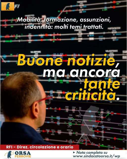 Abbiamo inoltre denunciato il comportamento datoriale tendente a trasformare le riunioni di manutenzione infrastrutture in mere informative senza dimostrare un reale interesse nel coinvolgimento delle parti sociali nell'affrontare e risolvere le tante problematiche ancora presenti nei territori.