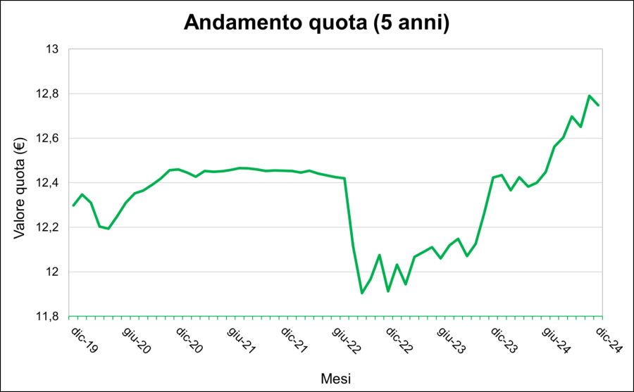 Il patrimonio del Fondo viene investito in maniera prevalentemente obbligazionaria. La composizione azionaria (anche questa composta da titoli etici) è, mediamente, del 5% e non può essere comunque superiore al 15%.