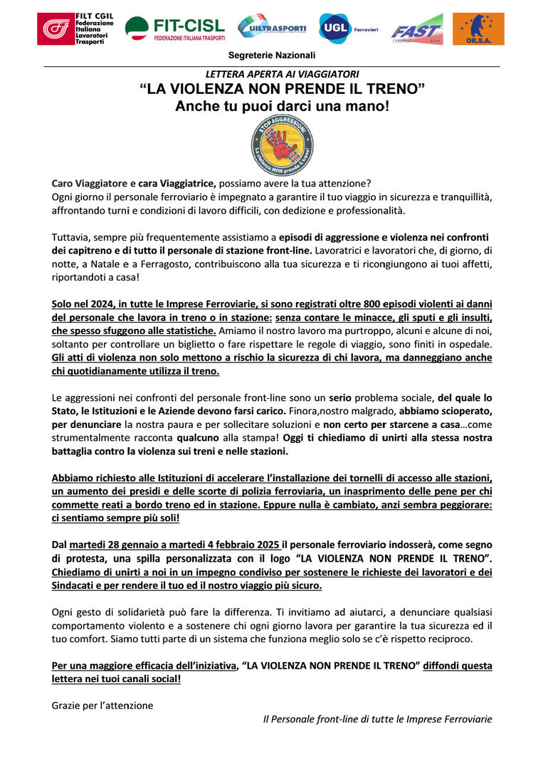 28.01.2025 - Aggressioni : Lettera aperta ai viaggiatori