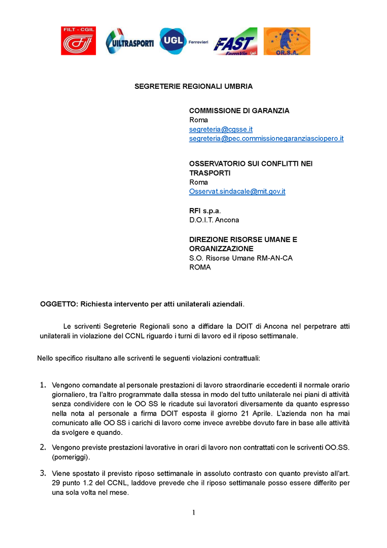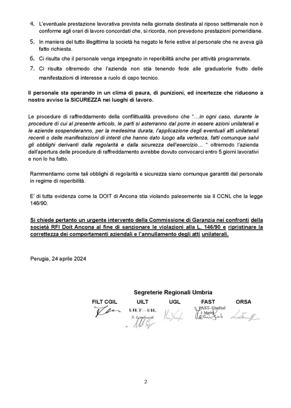 24.04.2024 - Richiesta Intervento CGSSE comportamento RFI